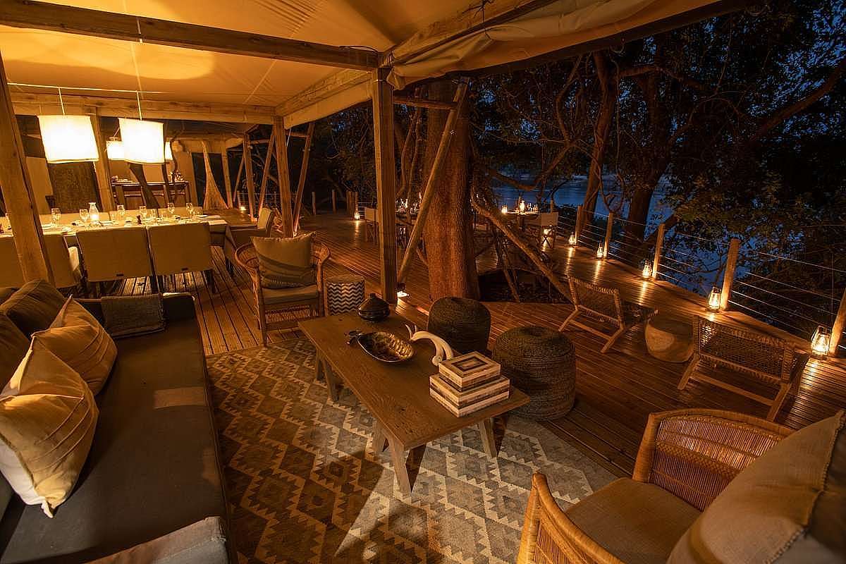 Tsowa Island is situated in the Zambezi National Park, a 56 000 ha game reserve which is also a renowned birding hot spot of 400 different species and home to lion, elephant, buffalo, giraffe, sable and numerous antelope. Zambezi National Park stretches from the Victoria Falls approximately 50 km upstream. Tsowa Island, 1.5 km long and 400m wide has never been inhabited and is fringed by lush forests. Guests are accommodated in stretch Bedouin style tents with timber frames and sides on wooden decks situated under massive Jackalberry trees, overlooking the Zambezi River. The outside deck area, which is also in the cool forest, has a dining area flowing onto a sunken fire pit which overlooks the river. The main area is linked to the pool area which overlooks the river and is situated in a sunny spot. Easy access to explore Victoria falls on a day excursion.